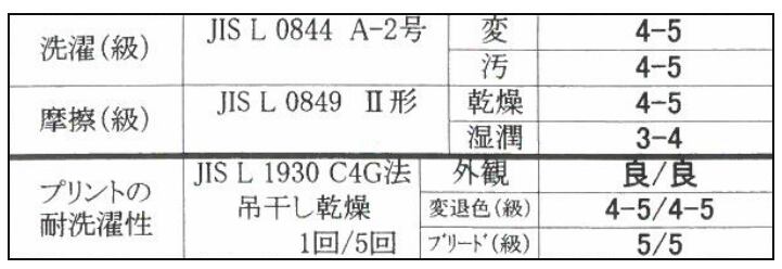 「洗濯堅牢度」「摩擦堅牢度」「プリントの耐洗濯性」